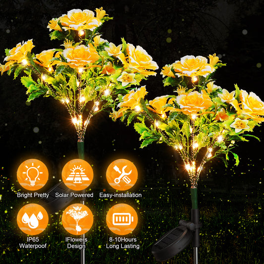 Garden Solar Lights Decorative 4 Pack, Solar Flowers Design, Solar Powered Flowers Light Dusk to Dawn, Solar Flowers Lights Outdoor Garden Waterproof IP65 for Garden Yard Decoration.