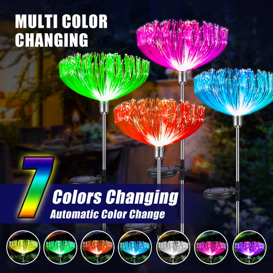 2Pcs Solar Garden Lights Outdoor Decorative, 7 Color Changing Fiber Optic Lights, Solar Lights Flowers Powered IP65 Waterproof, Garden Stakes Decorative Lights For Yard Path
