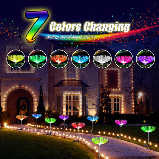 Neporal Solar Garden Lights 3 Pack New Upgraded Outdoor Waterproof 7 Color Changing double Jellyfish and Star Solar Flower Lights for Yard Decor,Outdoor Decor,Gifts for Women