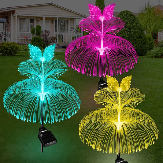 Solar Garden Lights Outdoor Waterproof 3 Pack Solar Flower Lights Yard Lights 7 Color Changing double Jellyfish Wing Solar Yard Lights for Garden Decor Yard Decor Outdoor Decor Gifts for Women