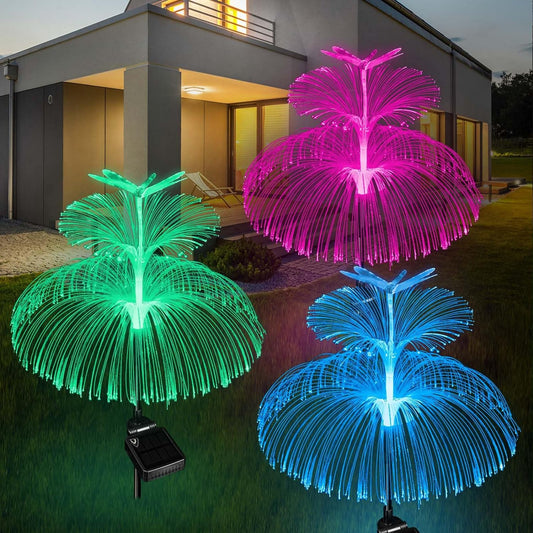 Neporal Solar Garden Lights 3 Pack New Upgraded Solar Outdoor Lights Waterproof 7 Color Changing Double Jellyfish Dragonfly Solar Flower Lights for Garden Yard Pathway Party Wedding Birthday Decor